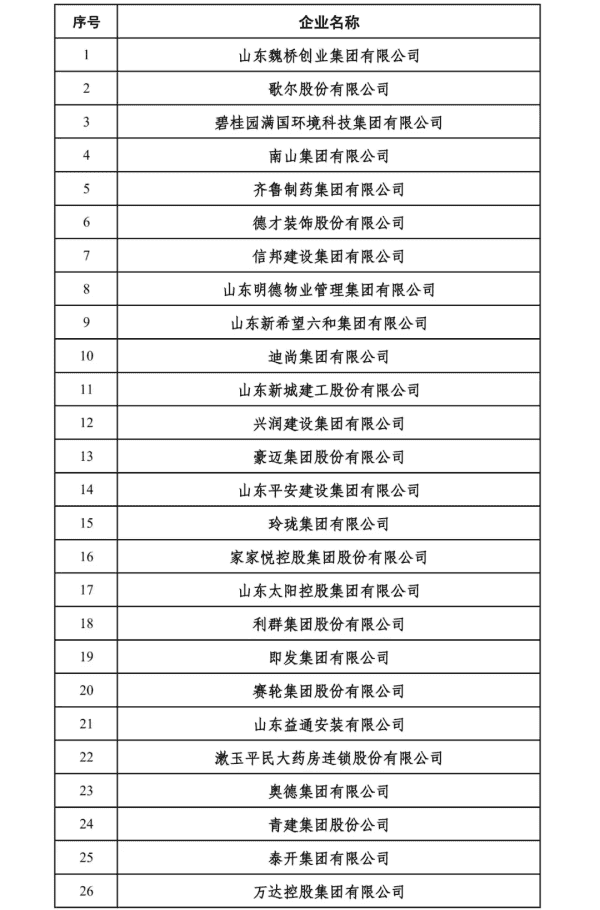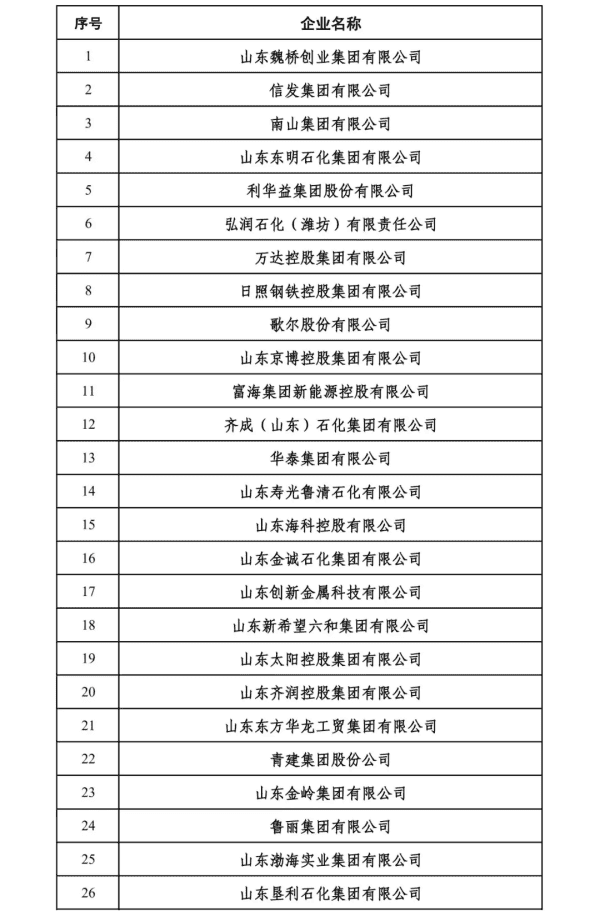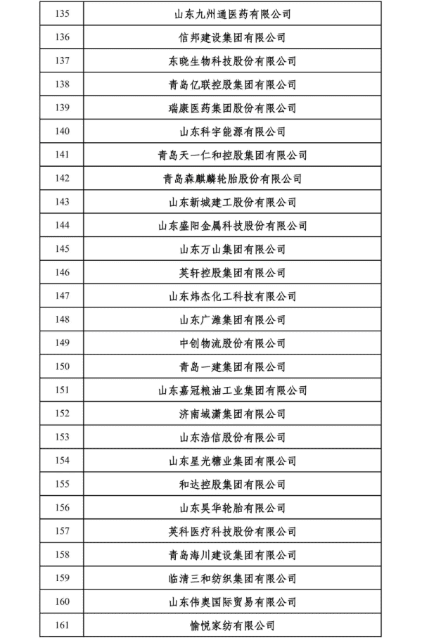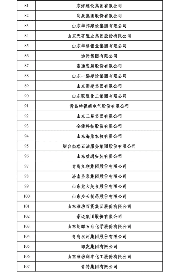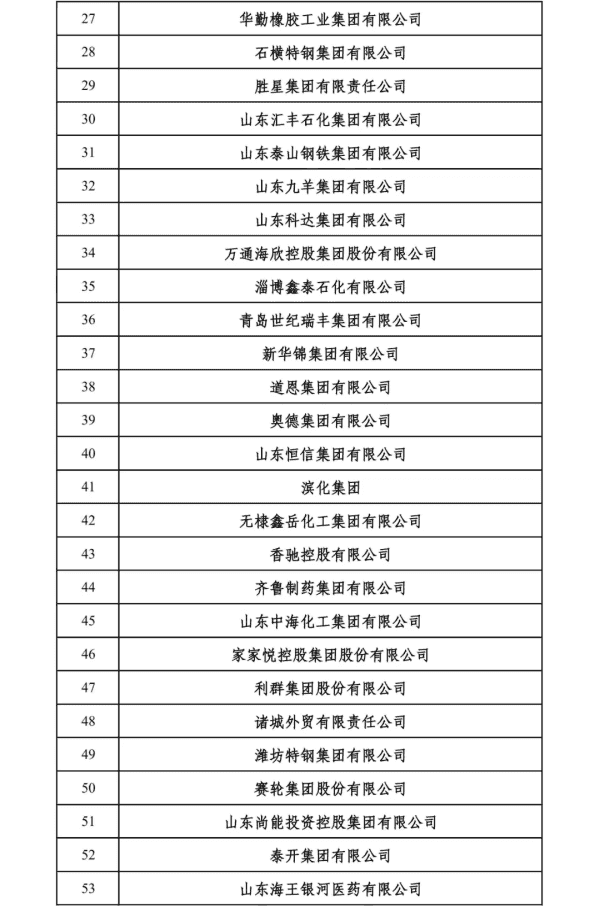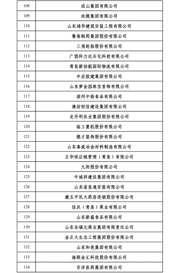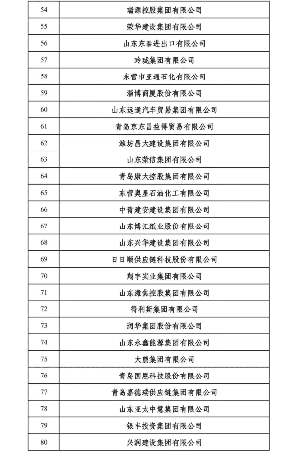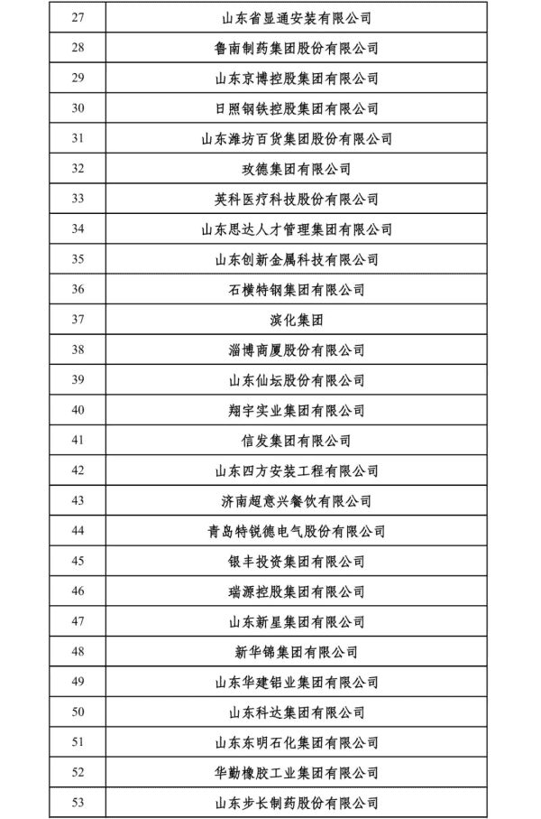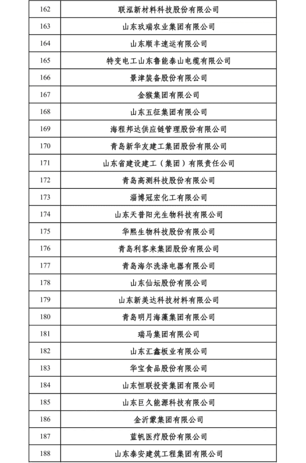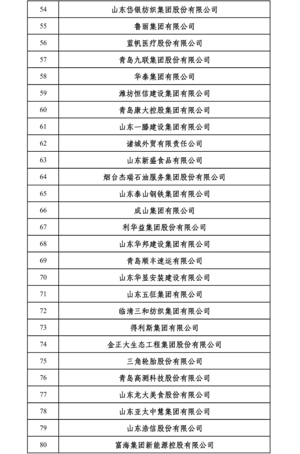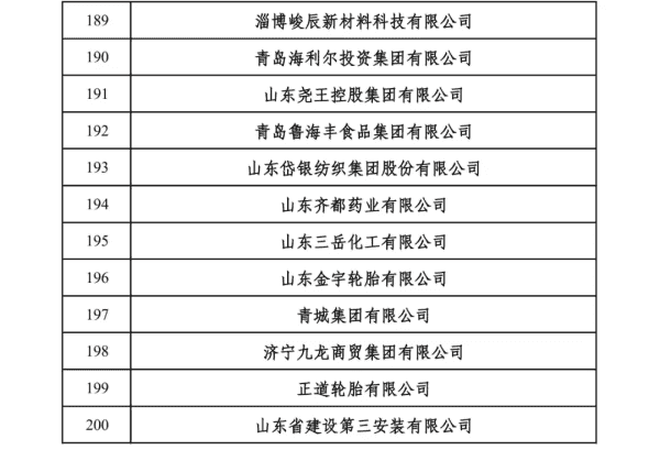 2024山东民营企业200强入围名单