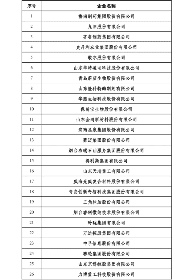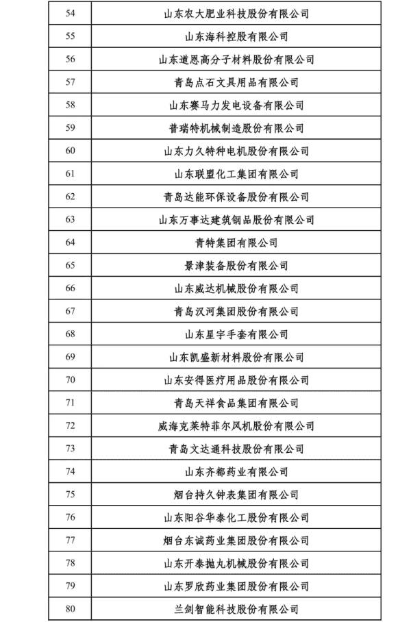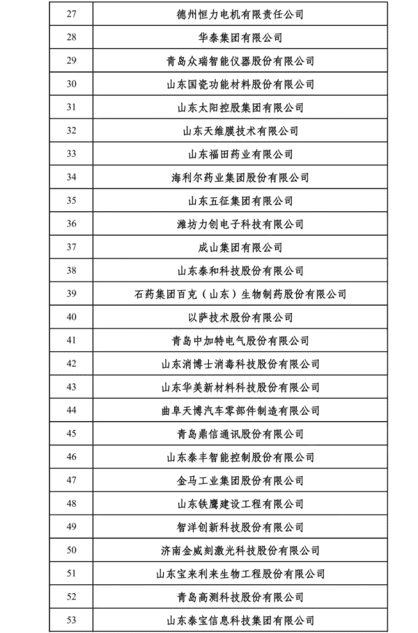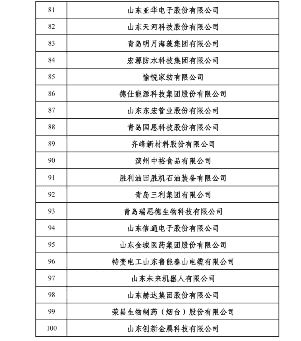 2024山东民营企业创新100强入围名单