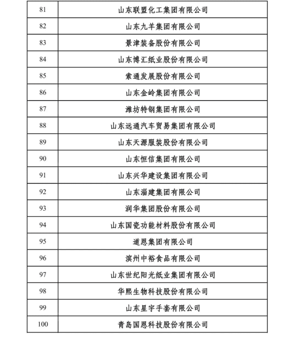2024山东民营企业吸纳就业100强入围名单