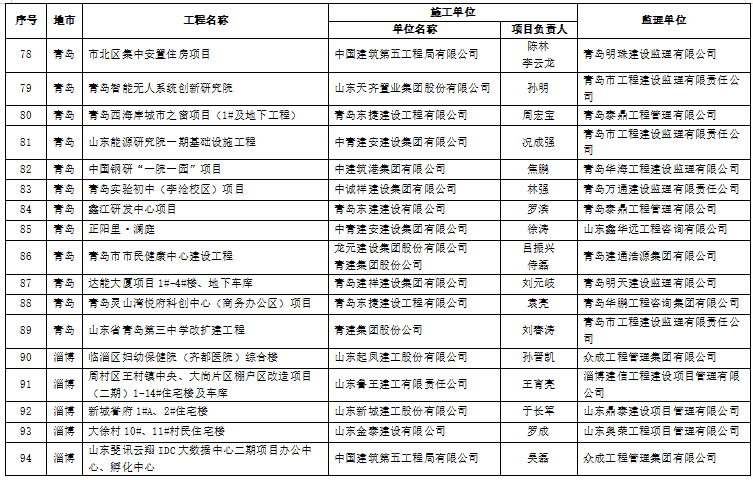 79 | 德州 | 齐河县南部新区一期市政工程(向阳路南延) | 山东禹城丽富达公路工程有限公司 | 刘晓晖 | 山东嘉宇项目管理有限公司 |