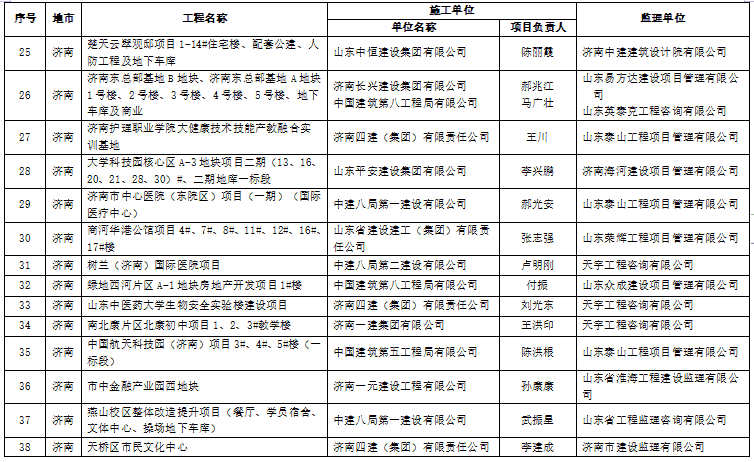 38 | 淄博 | 光大水务(淄博)有限公司一分厂搬迁项目土建工程 | 中建八局第一建设有限公司 | 曹艳允 | 山东泰和建设管理有限公司 |