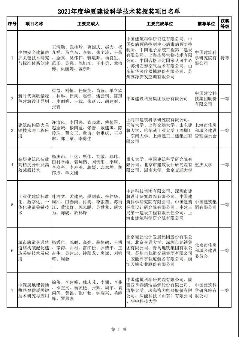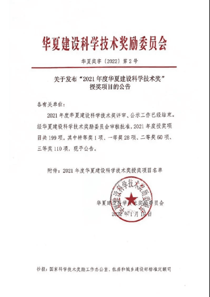 关于发布“2021年度华夏建设科学技术奖” 授奖项目的公告