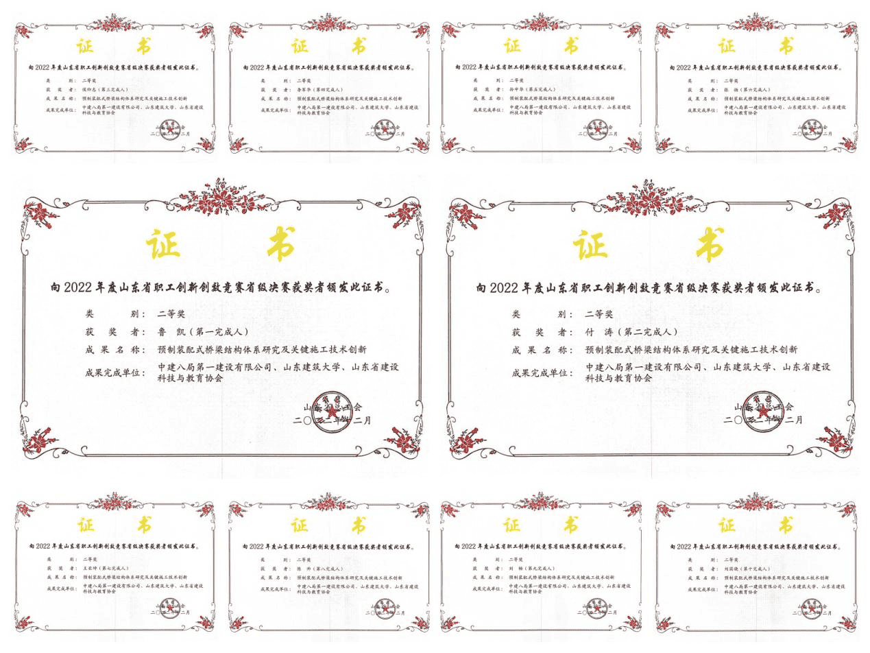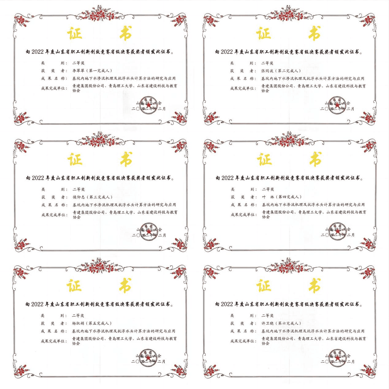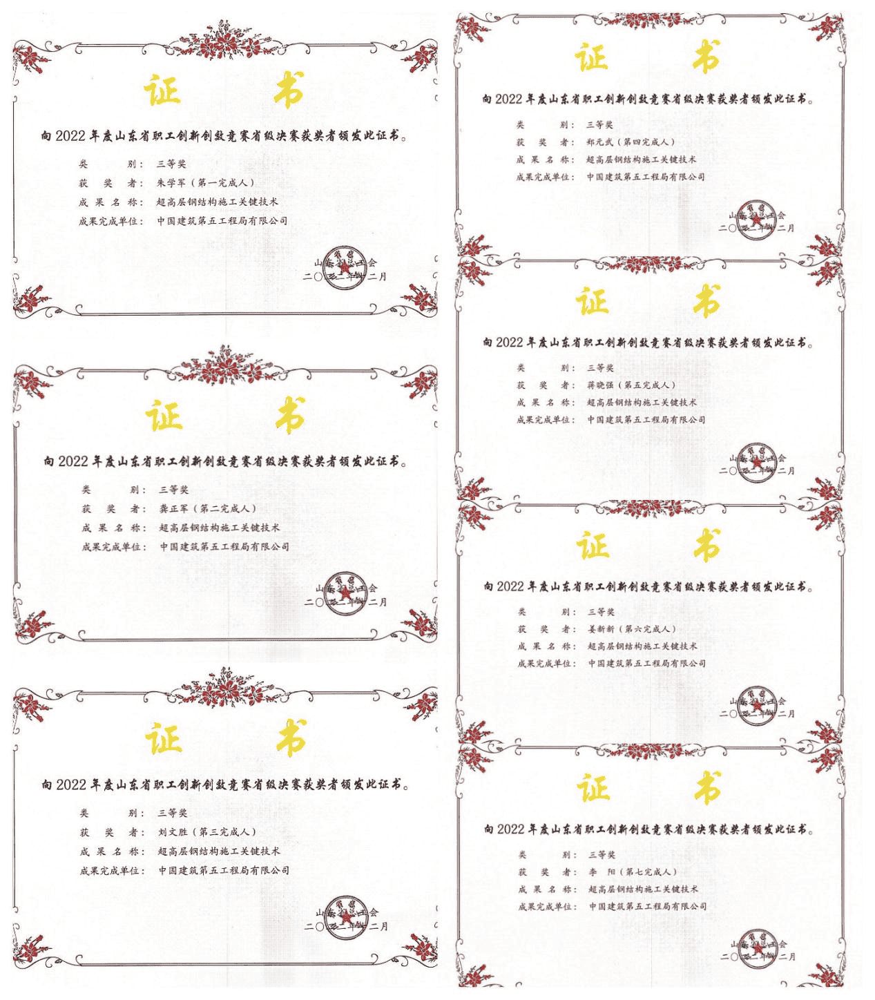在此次竞赛中,山东省建设科技与教育协会与青建集团股份公司、青岛理工大学联合申报成果“基坑内地下水渗流机理及抗浮水头计算方法的研究与应用”,与中建八局第一建设有限公司、山东建筑大学联合申报成果“预制装配式桥梁结构体系研究及关键施工技术创新”,均由山东省总工会授予2022年度山东省职工创新创效竞赛省级决赛二等奖,由省建设工会联合省建设科技与教育协会推荐的中国建筑第五工程局有限公司成果“超高层钢结构施工关键技术”荣获竞赛三等奖。