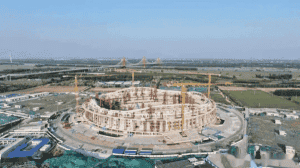 济南新旧动能转换起步区黄河体育及科技园区基础设施一期工程中的专业足球场项目,采用国际足联FIFA最新标准,致力于打造山东省首个6万座甲级大型专业足球场,项目总建筑面积达19.73万㎡,总合同额为19.65亿元。该项目由中建八局第一建设有限公司承建,北京市建筑设计研究院负责设计,计划于1522个日历天内完成建设。设计理念上,黄河体育中心足球场造型如同一颗明珠镶嵌在黄河岸边,圆润的外形包裹着矩形的球场,体现了黄河的雄伟气势。整体设计灵感来源于黄河九曲,打造了“一轴三环”的空间结构。项目积极践行黄河战略,助推新旧动能转换,并为加速建设体育强国贡献力量,力争荣获钢结构金奖、詹天佑大奖及鲁班奖等多项荣誉。