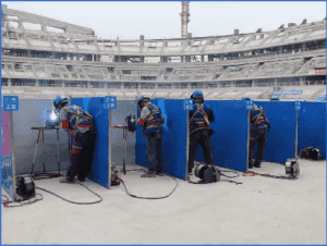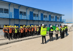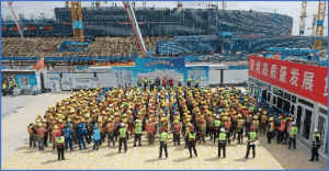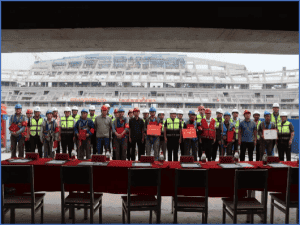 黄河体育场项目党支部以党建为引领,融入黄河精神和体育精神,打造以“大河·先锋”为核心的党建品牌,彰显党支部顽强拼搏、勇争第一的奋斗文化。项目党支部现有党员14人、团员29人,占比89%,形成了一支政治素养高、攻坚能力强的“红色铁军”。党支部围绕争创“五型五类”红旗示范党支部,致力于推动各项工作高质量完成。在党组织的引领下,项目坚持“保安全型、重质量型、强履约型、创效益型、促市场型”五大目标,争创“全国建筑安全文明标准化示范工地”和“中国建设工程鲁班奖”,保障工期按计划落地。此外,党支部还积极推动项目产生综合效益,并助力黄河体育中心加快建设,为公司未来承接更多体育场馆项目奠定坚实基础。