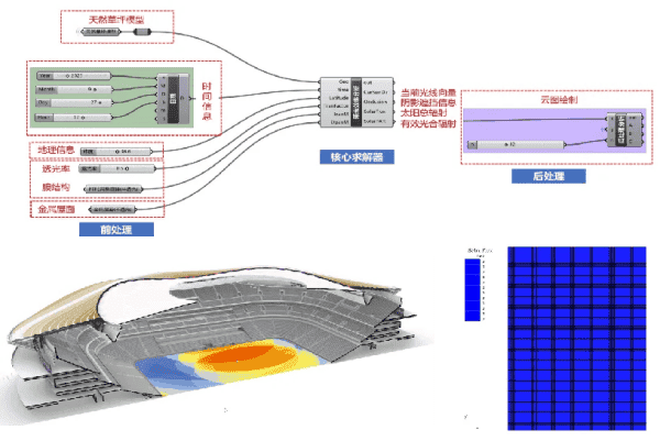 黄河体育场项目严格落实“双碳”目标要求,自主研发基于REVIT软件的碳优化系统,全面评估和计算项目全生命周期的碳排放量,确保从设计到建造的各个环节都严格控制碳排放。通过应用高透光PTFE网格膜,优化草坪低碳养护,减少人工补光需求,每年节省约80hm²的补光面积,降低400万元的年度补光费用,为打造绿色、低碳、可持续的体育场馆做出了积极贡献,也为推动实现行业“双碳”目标提供了宝贵经验和示范作用。
