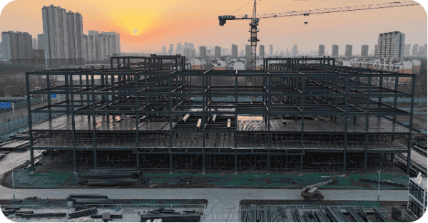 滨州公交智慧停车场项目总建筑面积约74676.05平方米,地上四层、地下1层,分为A、B、C、D、E五个区域,中心设有下沉式广场。项目建设内容包括智慧停车场、公交智能调度中心、公交维修中心、运营后勤中心及公交培训中心等配套设施,打造集智慧交通调度、公交换乘、高铁接驳、车辆维修、公用充电桩等功能于一体的综合枢纽。项目采用2442颗密集桩基,施工工序复杂,A区框柱为型钢混凝土结构,悬挑部分跨度达38米,施工难度高,需严格控制关键环节,确保工程质量。