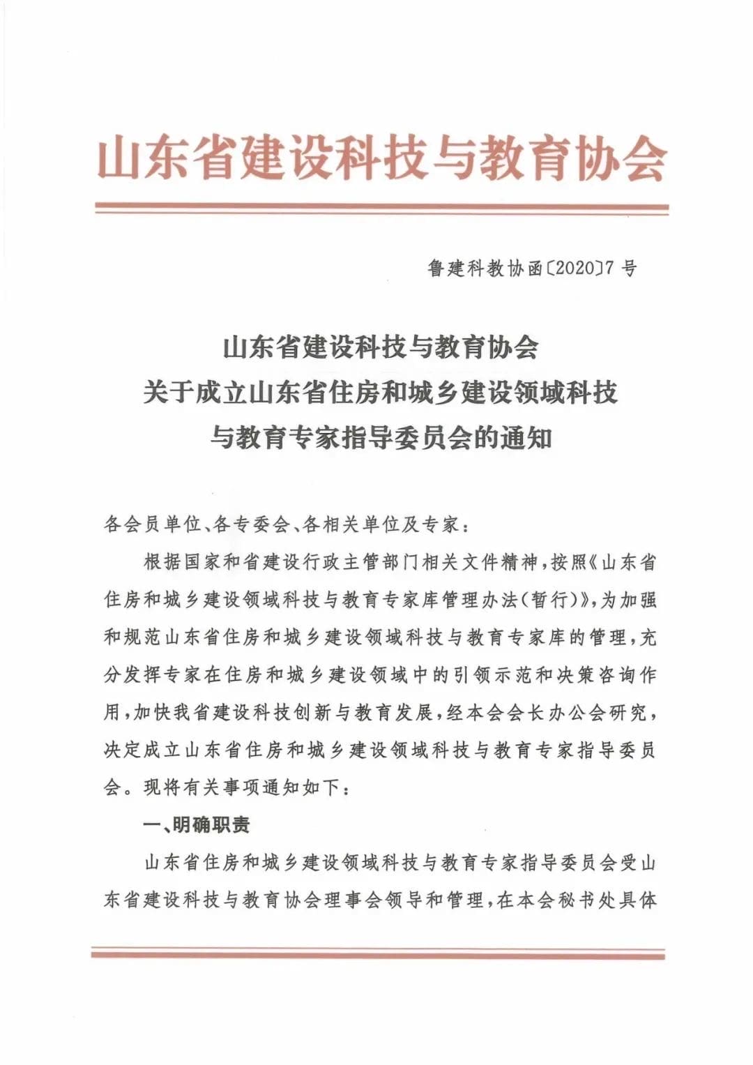 关于成立山东省住房和城乡建设领域科技与教育专家指导委员会的通知