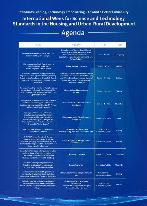 2025年10月28日至11月3日,由住房城乡建设部标准定额司主办的“2025年住房城乡建设领域科技标准国际交流周”(以下简称“交流周”)顺利开展。交流周以“标准引领、科技赋能——迈向更美好的未来城市”为主题,组织相关单位,举行了12场形式多样、内容丰富的交流活动。