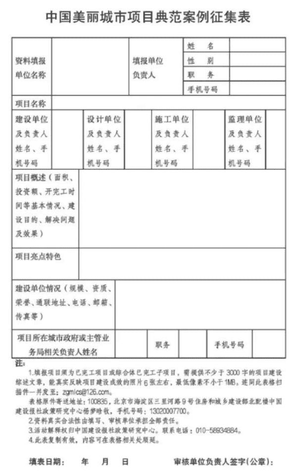 为发掘更多可资借鉴的地方实践案例,助力美丽城市、美丽中国建设,报社政策研究中心决定在自主选择课题研究案例城市基础上,从即日起公开征集《中国美丽城市》2025年度作品——中国美丽城市城市典范(含区、县、新城)、项目典范案例,按收到材料时间先后登记并阶段性审核,截止时间:2025年10月底(收到材料时间,越早填报参与获得含《中国建设报·中国美丽城市》在内的多平台多轮次宣传展示机会越多),有意参与该课题的城市请按要求填写案例征集表并及时同报社政策研究中心取得联系。