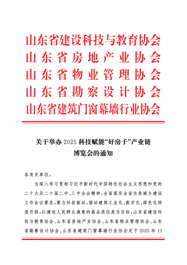 关于举办2025科技赋能“好房子”产业链博览会的通知